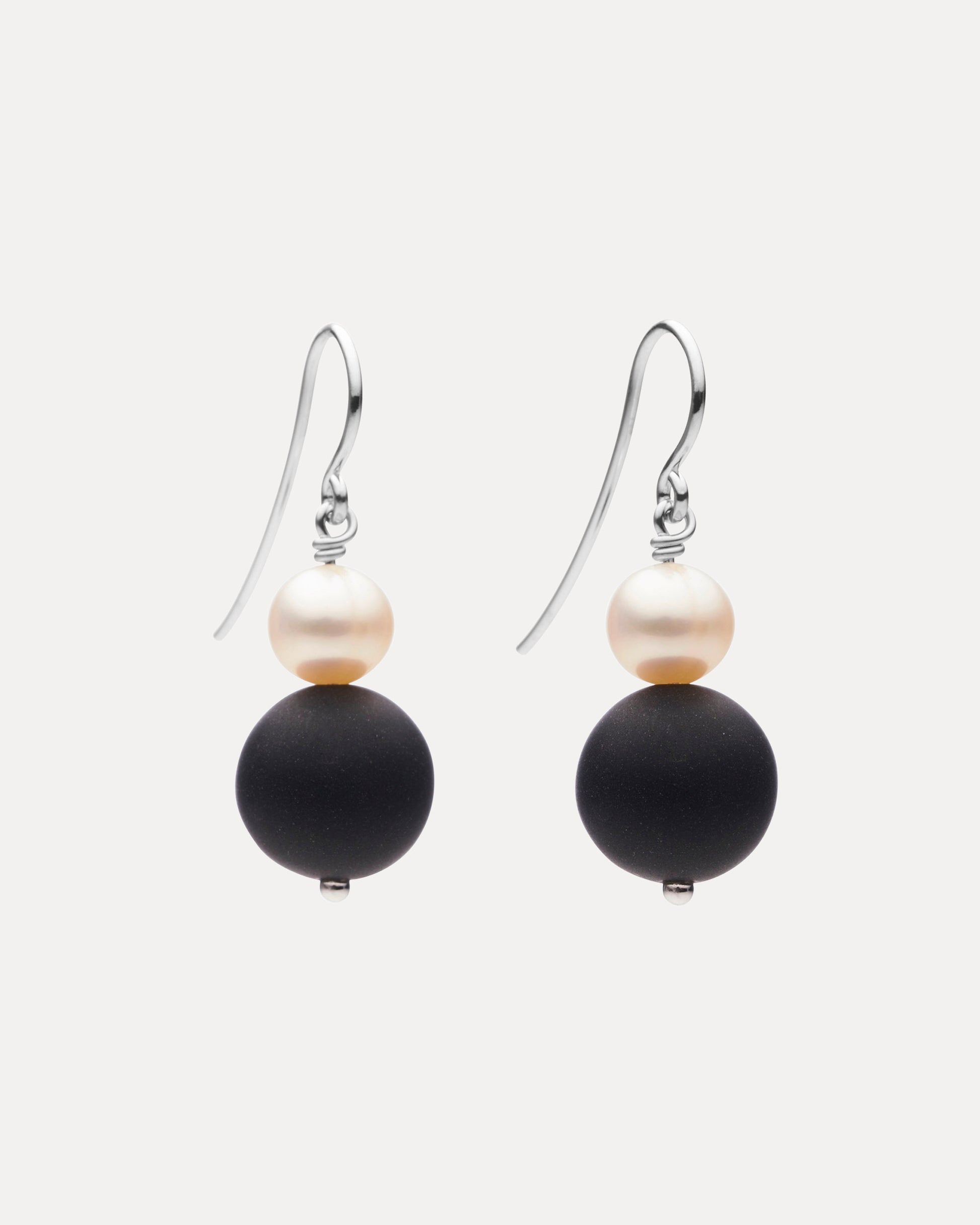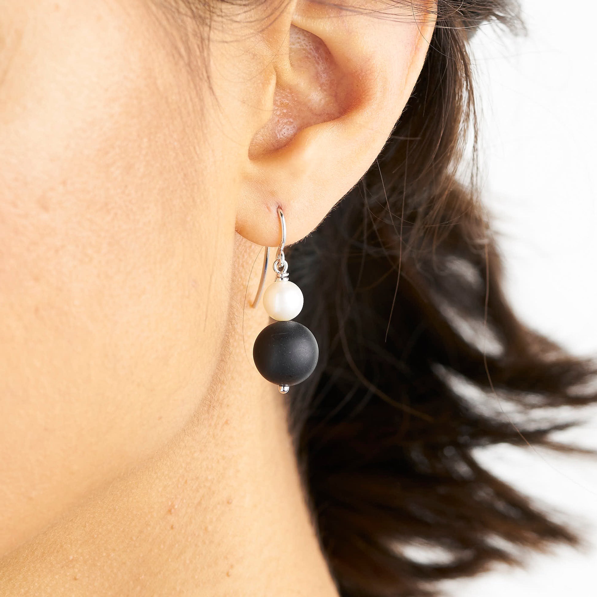 These stunning earrings pair classic pearls with striking onyx to create a modern classic. If you love the elegance of pearl earrings yet also adore the unexpected, this piece is a beautiful choice. These pearl and black onyx earrings are perfectly suspended on sterling silver, offering a modern take on an old classic.