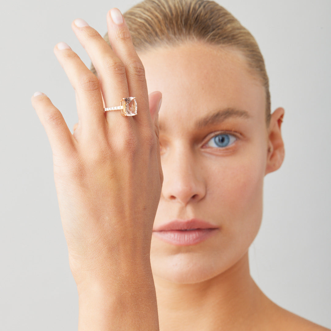 - Morganite = 12 x 10mm | Diamonds = 0.30cts