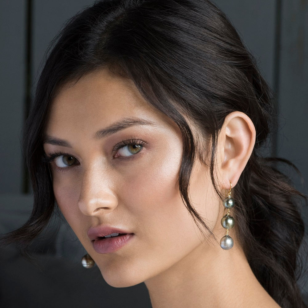 ltd edition 18ct graduated tahitian pearl sage earrings