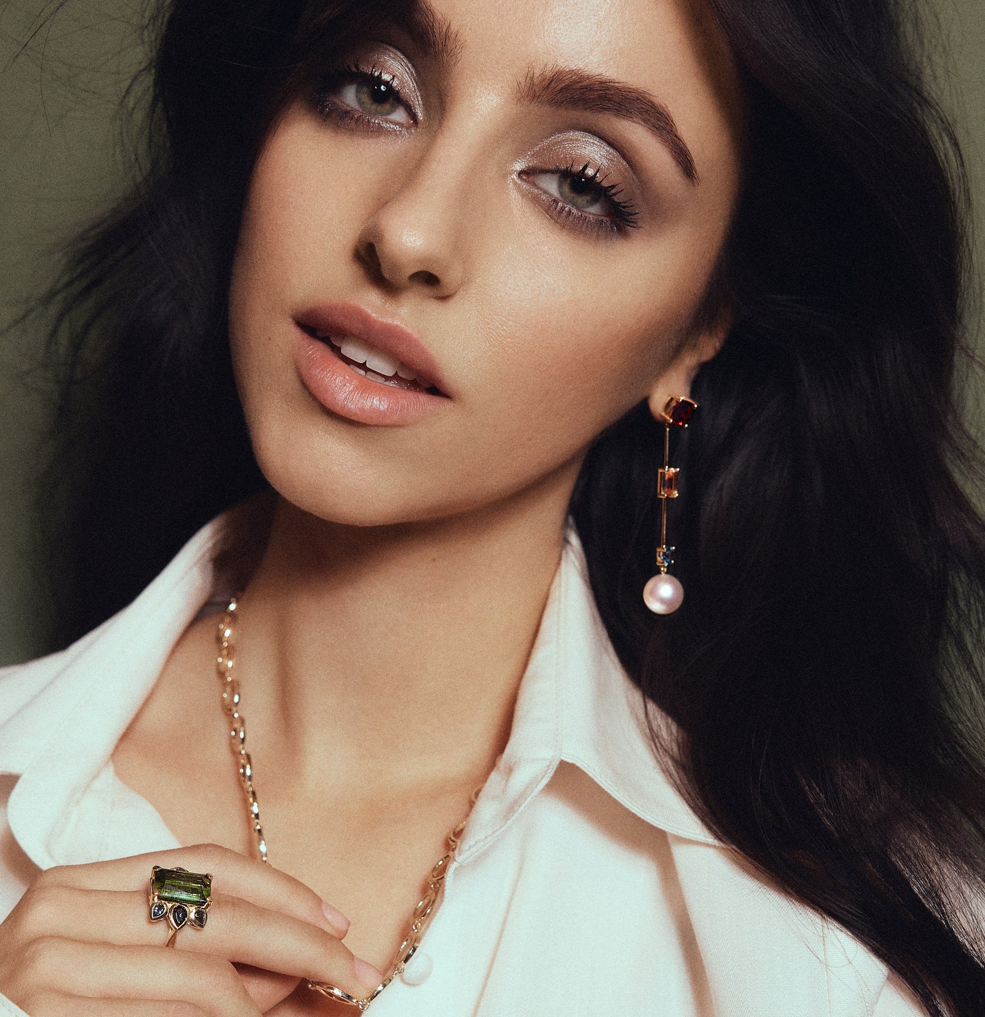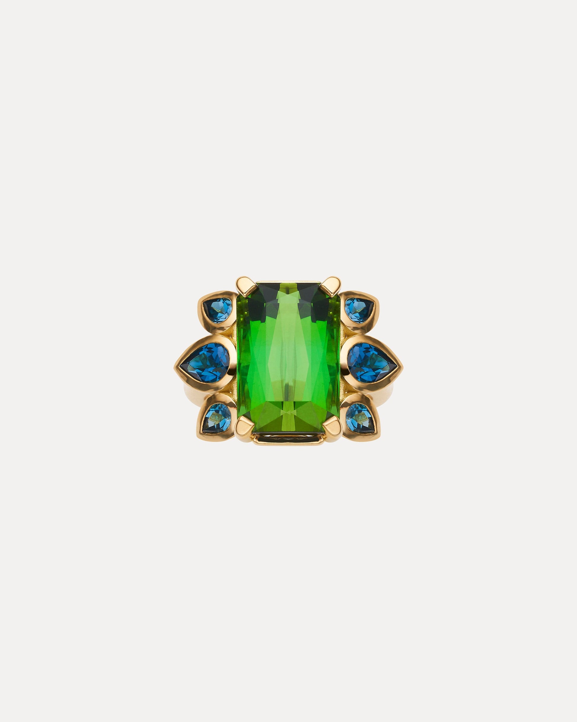 bespoke 18ct green tourmaline & london blue topaz ring