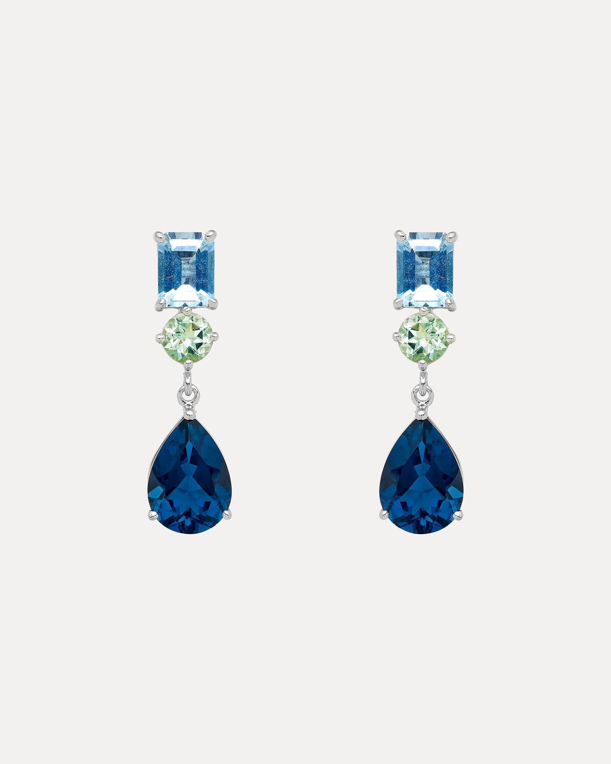 - Earrings consists of aquamarine, green amethyst and London blue topaz. | Total earring length is approximately 30mm.