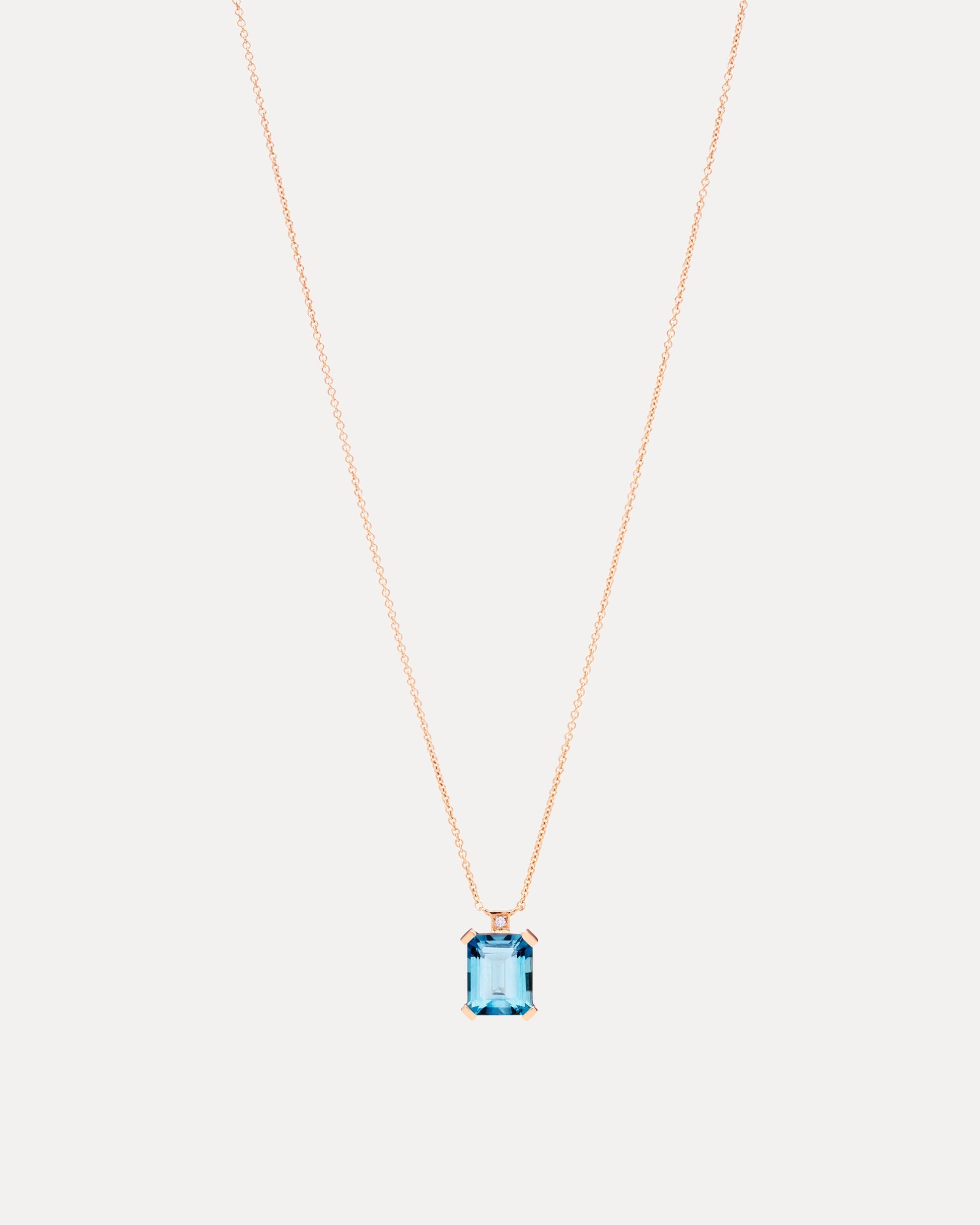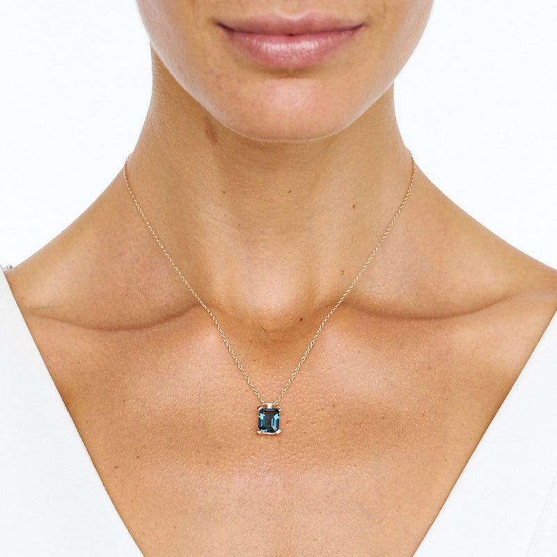 - A blue horizon, untouched by all but the Sun. The azure seas of Sardinia flicker from the depths of a London Blue Topaz pendant, illuminated under a diamond sun.