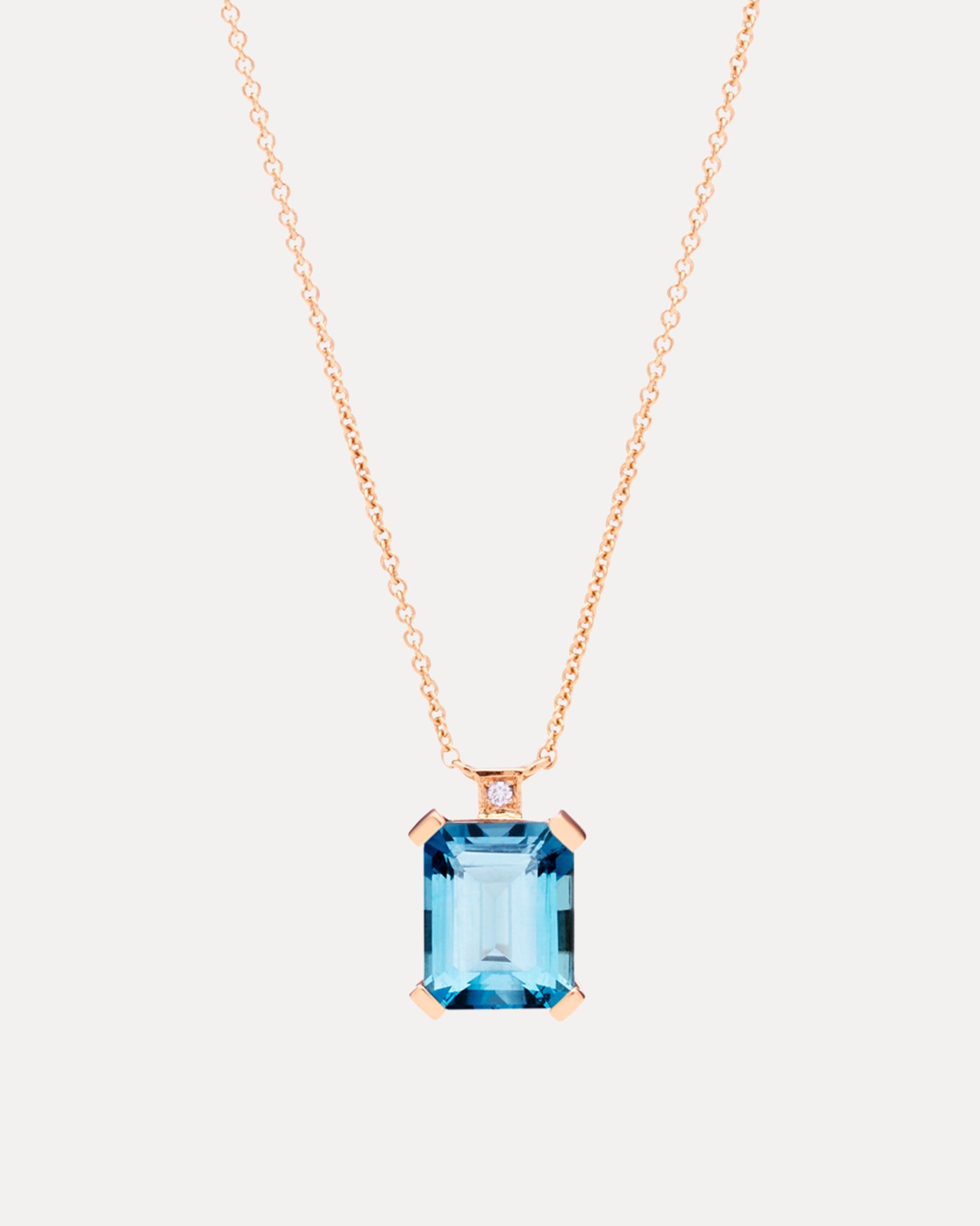 18ct rose gold london blue topaz & diamond sardinia pendant