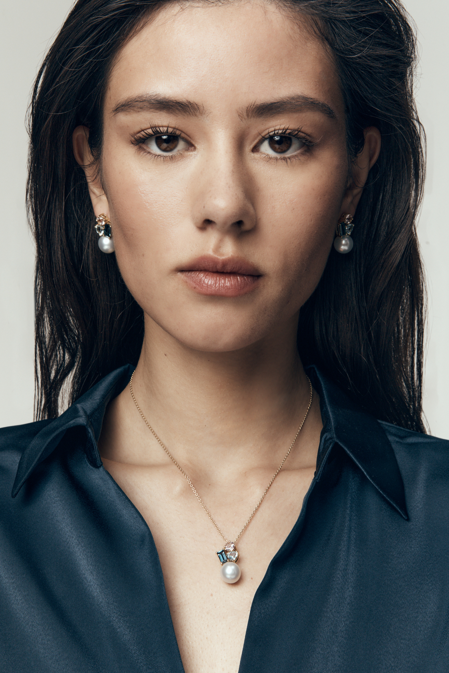 18ct south sea pearl, london blue topaz & pink morganite demarchi pendant