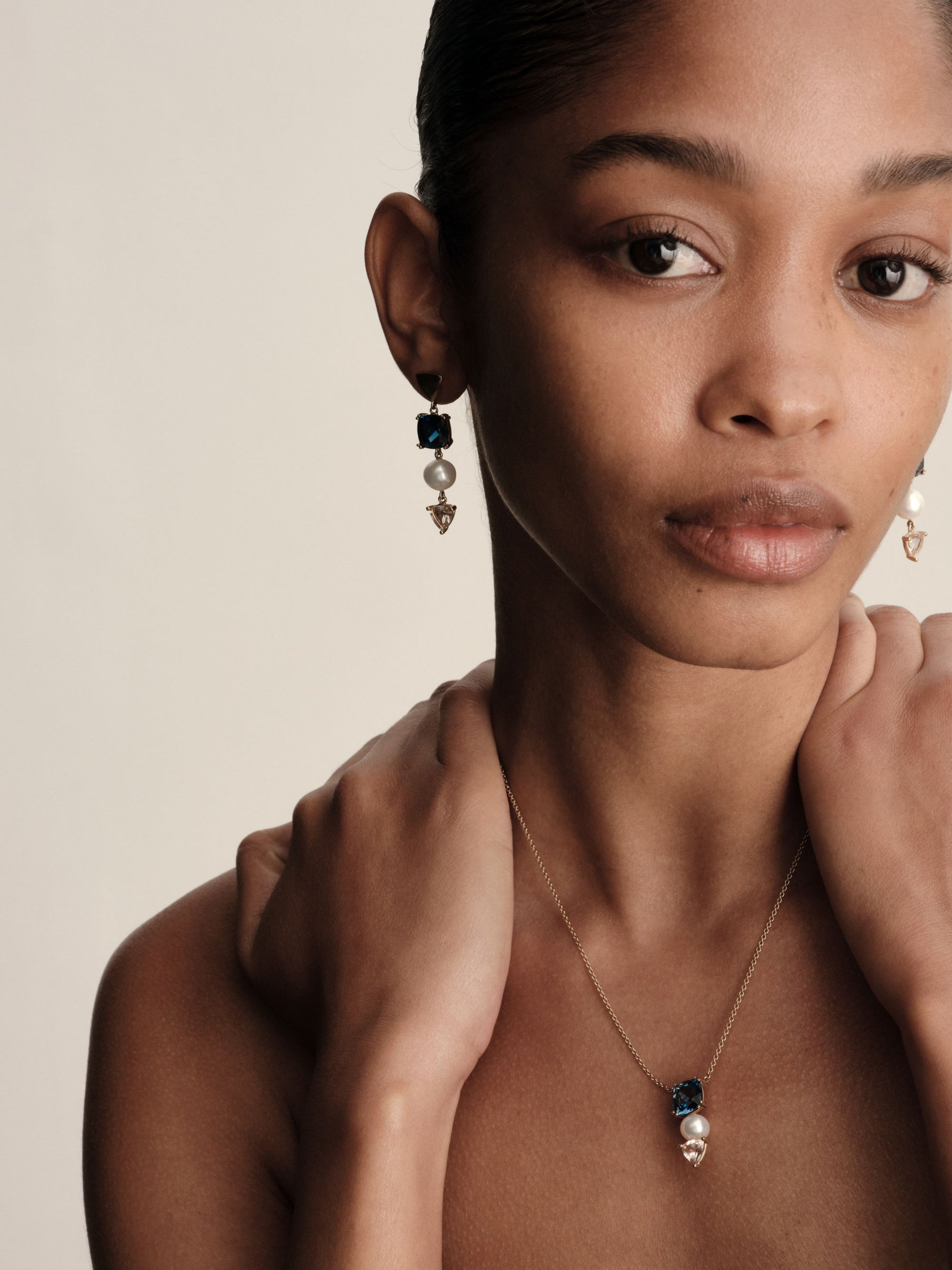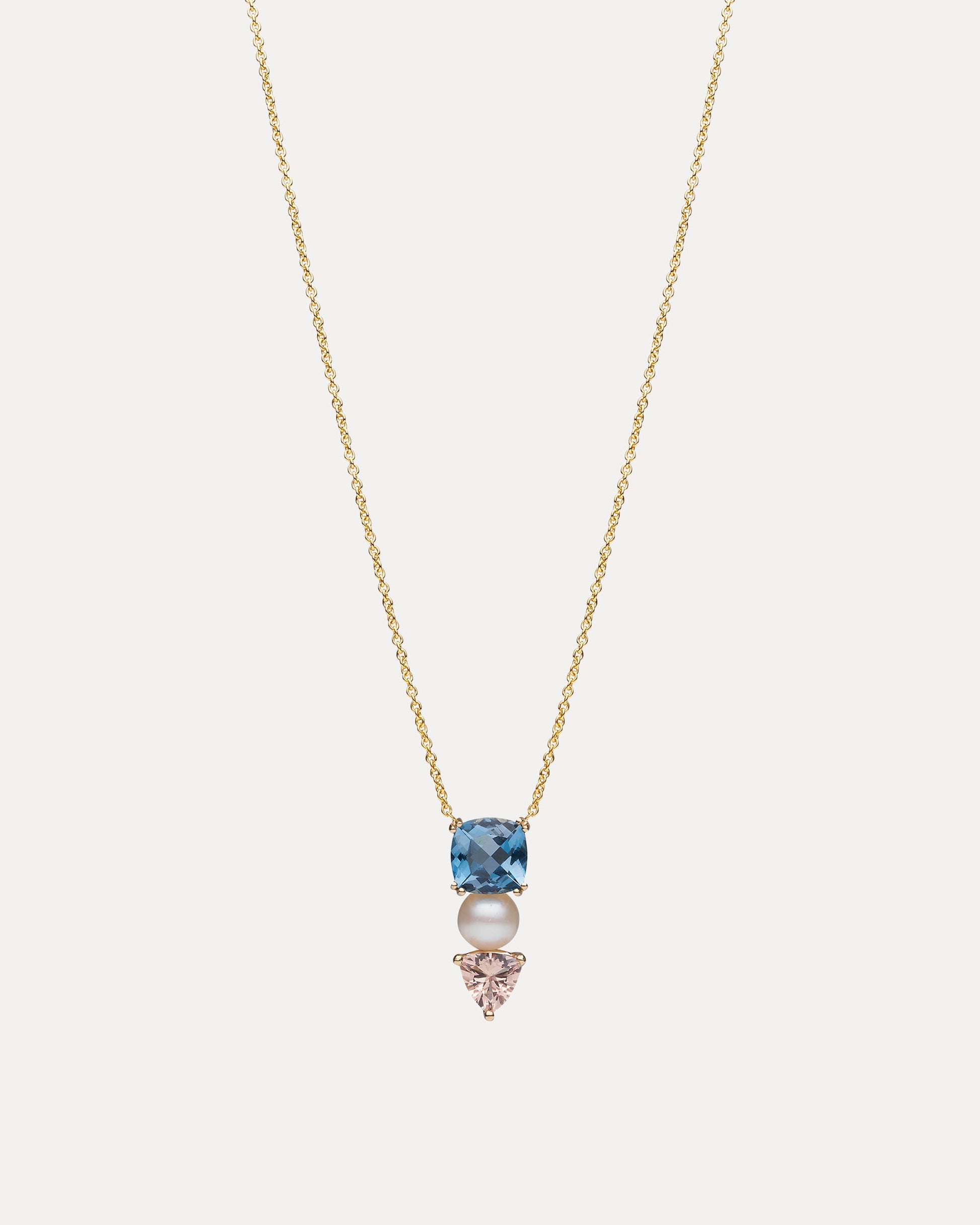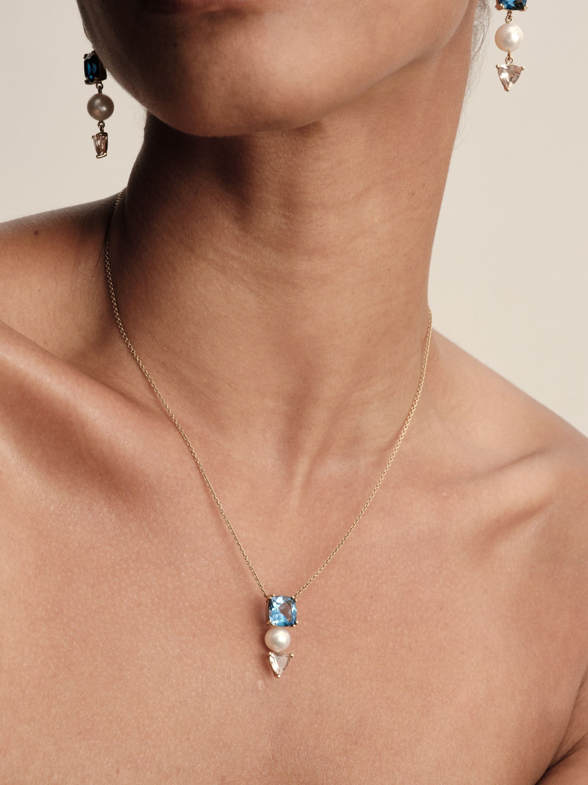 9ct london blue topaz, pink morganite & pearl dunaway pendant