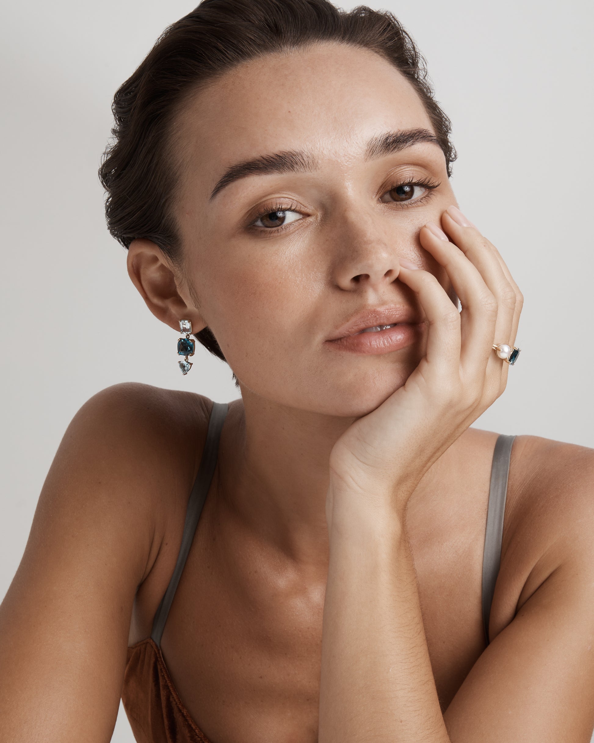 9ct yellow gold aquamarine & london blue topaz fonda earrings
