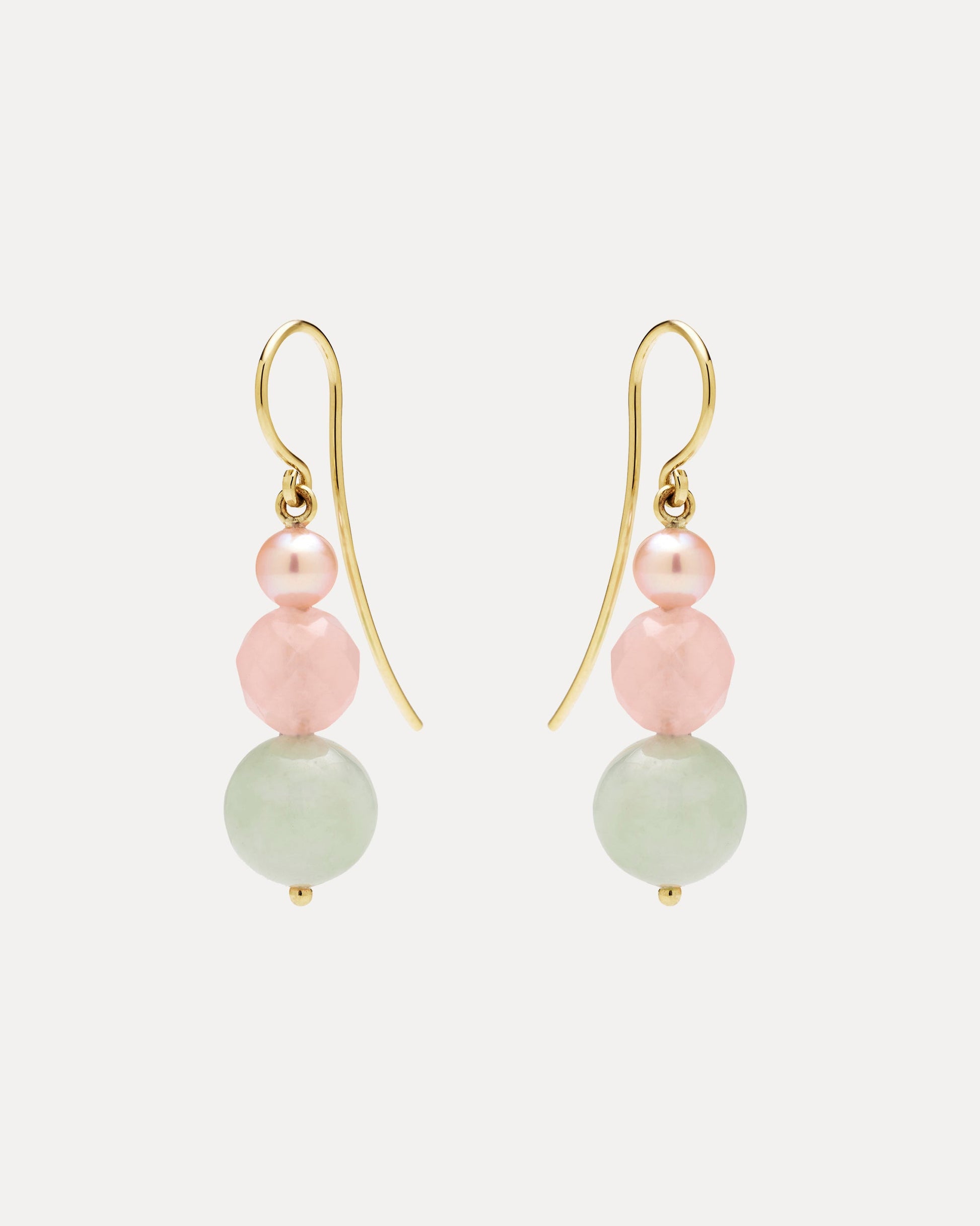 9ct jade, rose quartz & pearl lilas earrings
