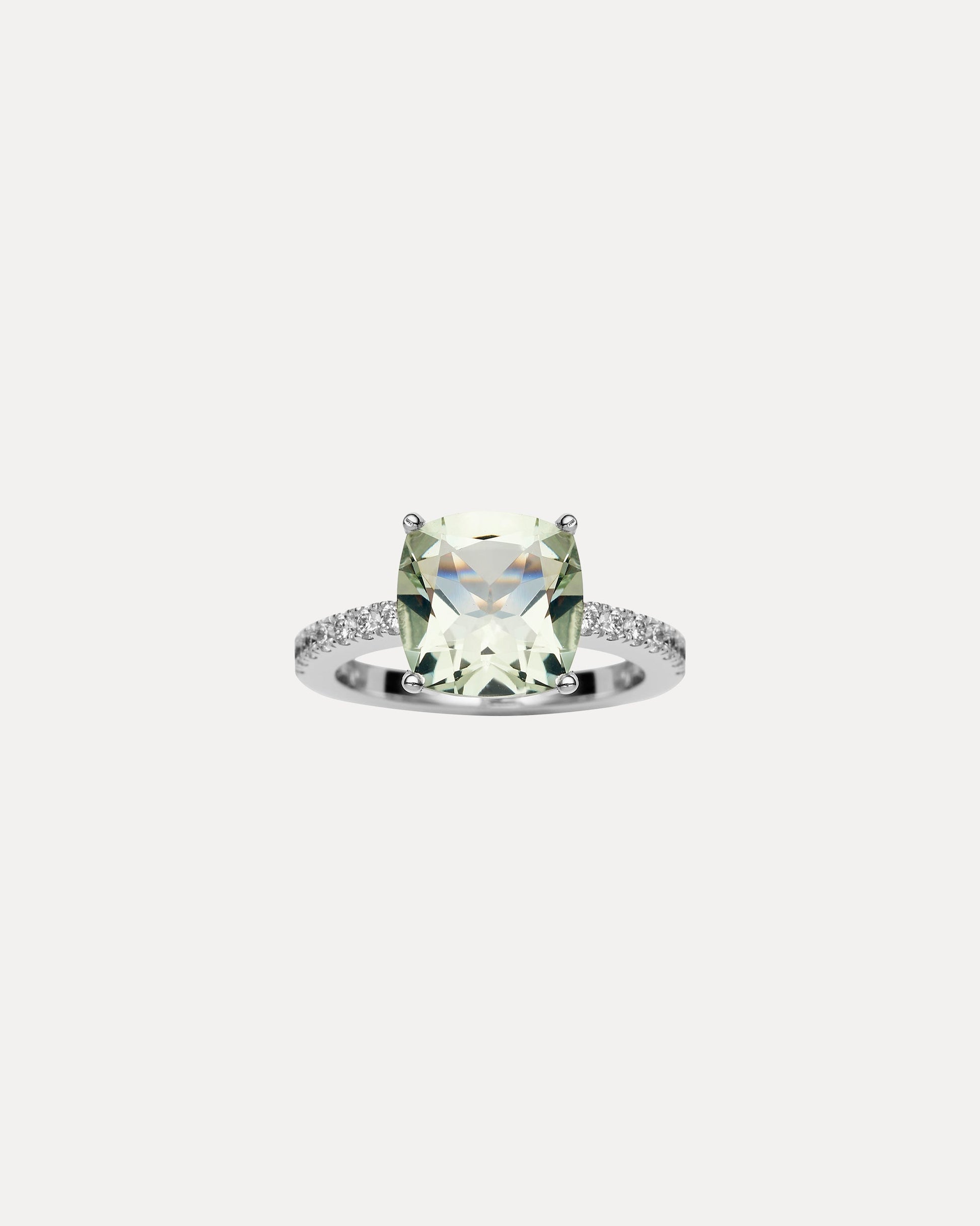 - Green amethyst = 9.5 x 9.5mm | Diamonds = 0.28ct