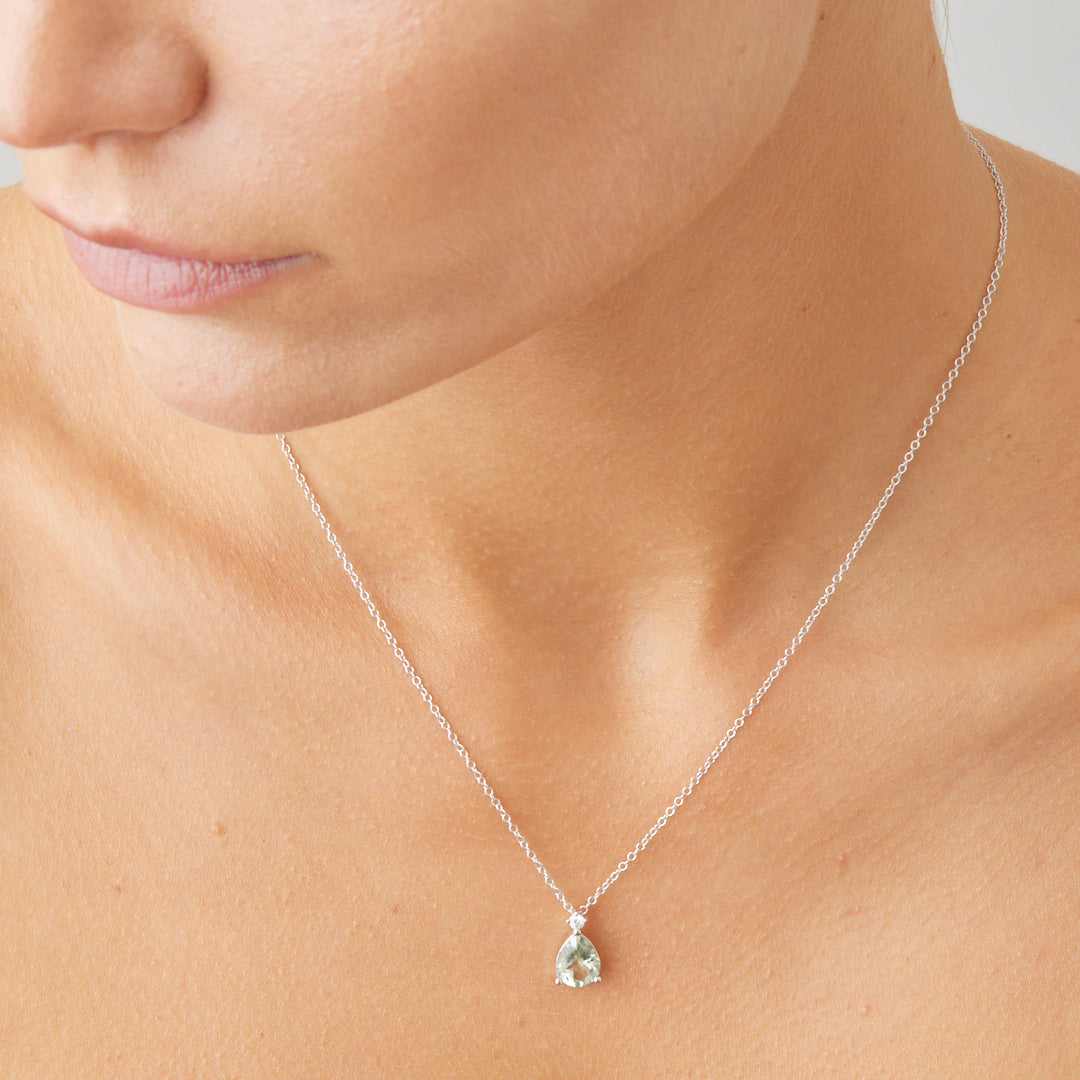 18ct white gold green amethyst & diamond bonnard pendant